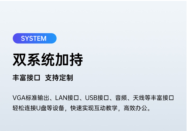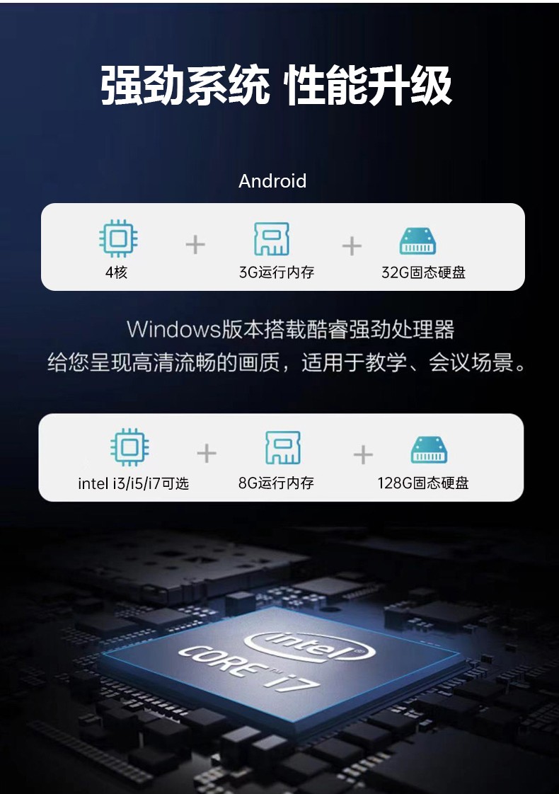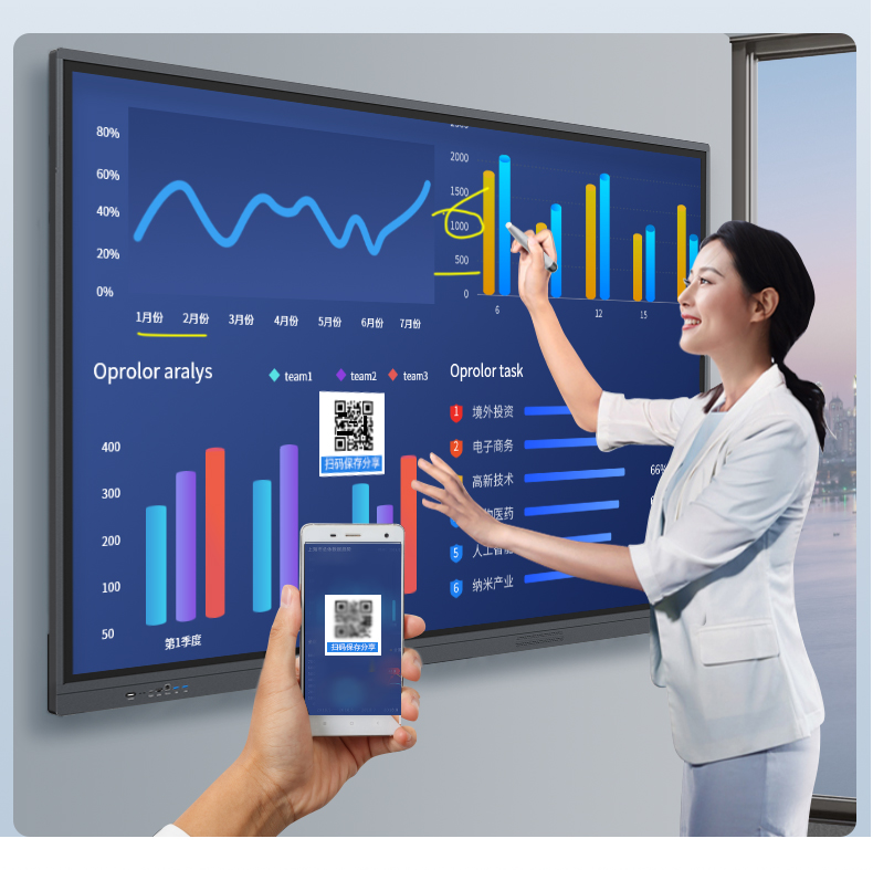 品牌:勤冠 类型:触控一体机 屏幕类型:液晶 分辨率:1920*1080 透光率:大于95%(%) 亮度:350(cd/㎡) 对比度:8000:1 点击次数:5000(万次) 感应力度:0.1(g) 响应时间:0.1(ms) 接口:OPS、USB、HDMI、VGA、音频 尺寸:32-100英寸 功能:书写批注、无线投屏、视频会议、20点触控